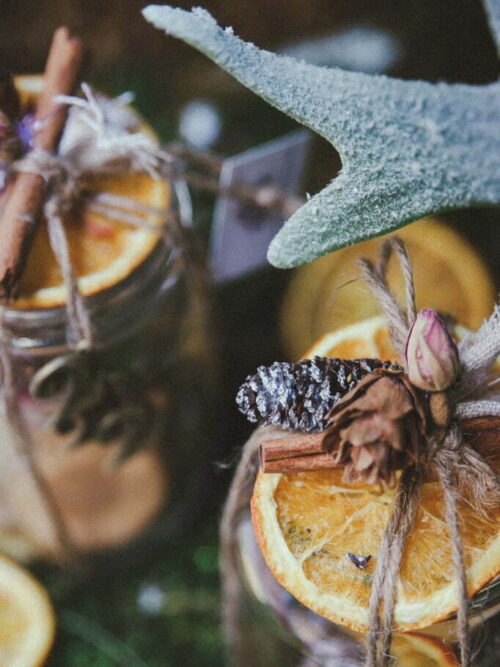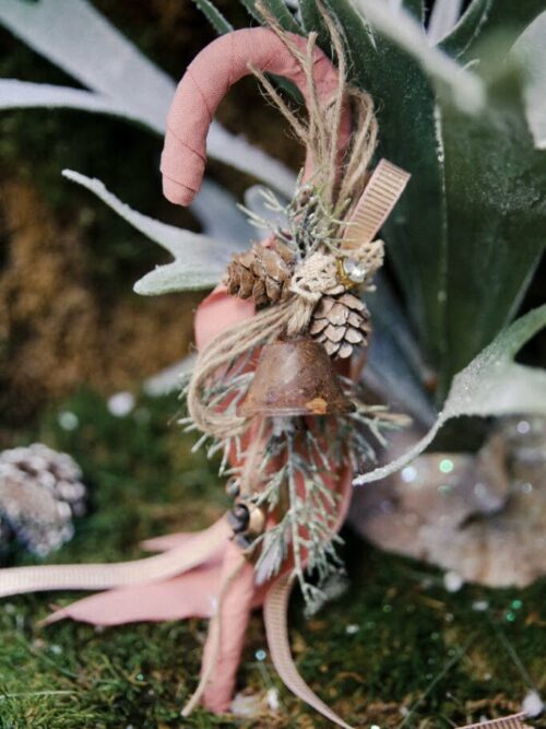 Γυαλίνη καμπανούλα με χιονισμένους καρπούς, κουκουνάρια και ξύλινο 2023.